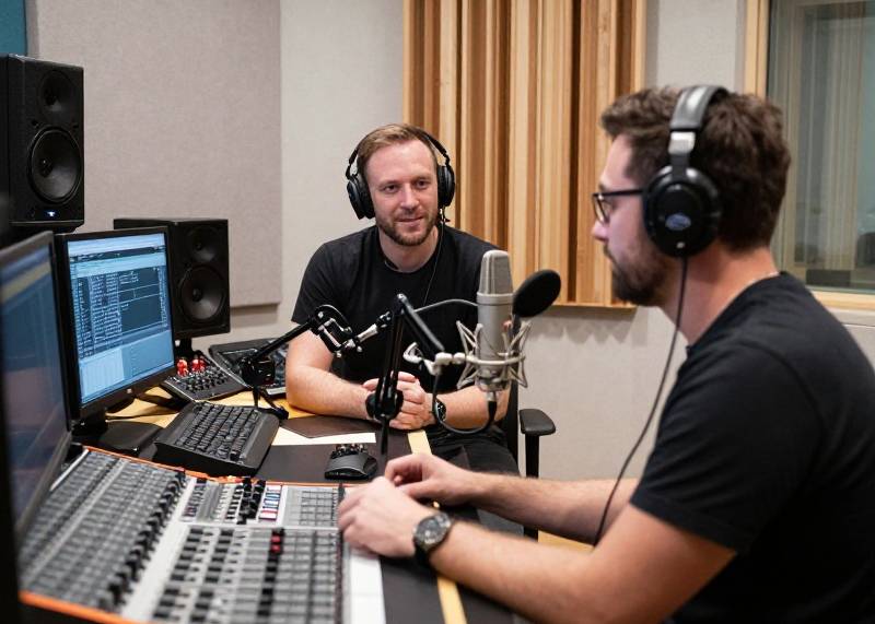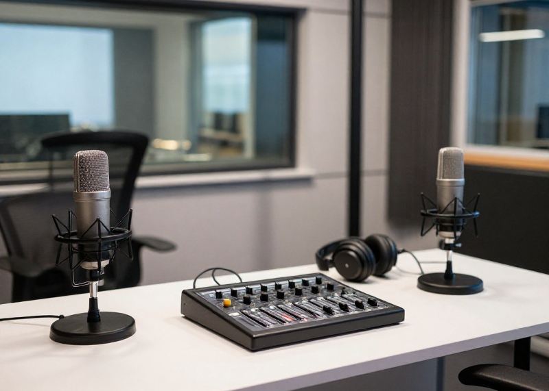 Voll ausgestattete Podcast-Studios mit modernster Audiotechnik für Interviews, Diskussionen und Audio-Produktionen. Flexible Mietzeiten und professionelle Ausstattung.